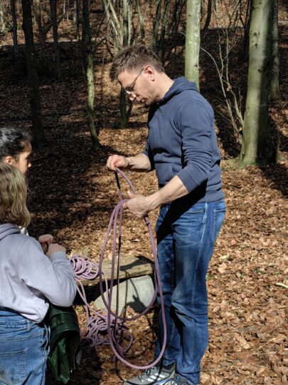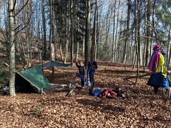 Bei sonnigem Frühlingswetter verbrachten wir unseren Naturtag im Wald. Wir spielten frei zwischen den Bäumen, übten den Mastwurf-Knoten und bauten damit sogar eine kleine Schaukel. Zwischendurch beobachteten und hörten wir Vögel und genossen die ruhige Stimmung. Zum Zmittag brätelten wir gemeinsam am Feuer – ein rundum gelungener Tag in der Natur.