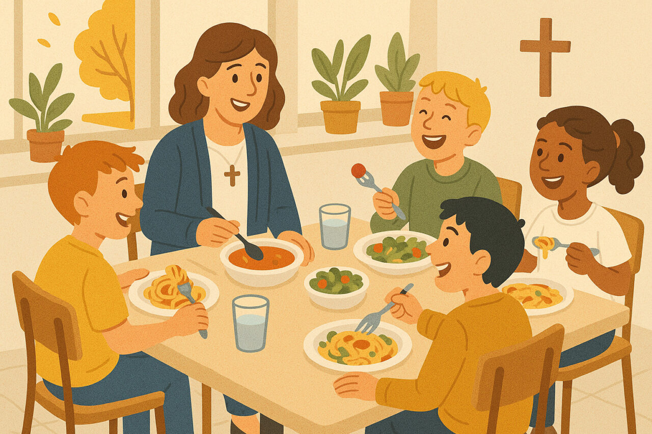 Ende August hat uns Aaron Walter, Leiter Mittagstisch, verlassen. Das Mittagstischteam um Mirjam als Dienstälteste mit Fabienne, Marlies, Maximilian und Roland haben kurzerhand die Verantwortung selber übernommen und… es klappt bestens.